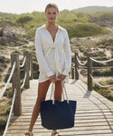 Printed stripe design. Durable canvas construction. Heavyweight rope carry handles. Can be used in the hand or over the shoulder. Handle length: 60cm.